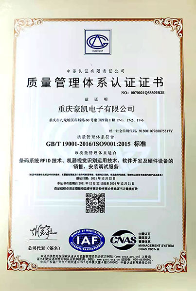 重庆豪凯电子有限公司成立于2004年,致力于自动识别行业、工业互联网集成应用,提供专业整体解决方案的高新技术企业。公司通过了ISO9001服务质量管理体系认证,主要业务包括各类系统集成设计开发、电子射频RFID识别系统、机器视觉识别应用、智能制造、企业级无线网络架设、移动式采集系统、医疗护理识别系统等应用解决方案。公司拥有一支经验丰富、高效专业的软硬件服务团队。依托互联网平台和大数据应用,助力企业打造智能化生态圈,以赋能企业为核心,提供新形态的数字化管理系统和智能化解决方案。